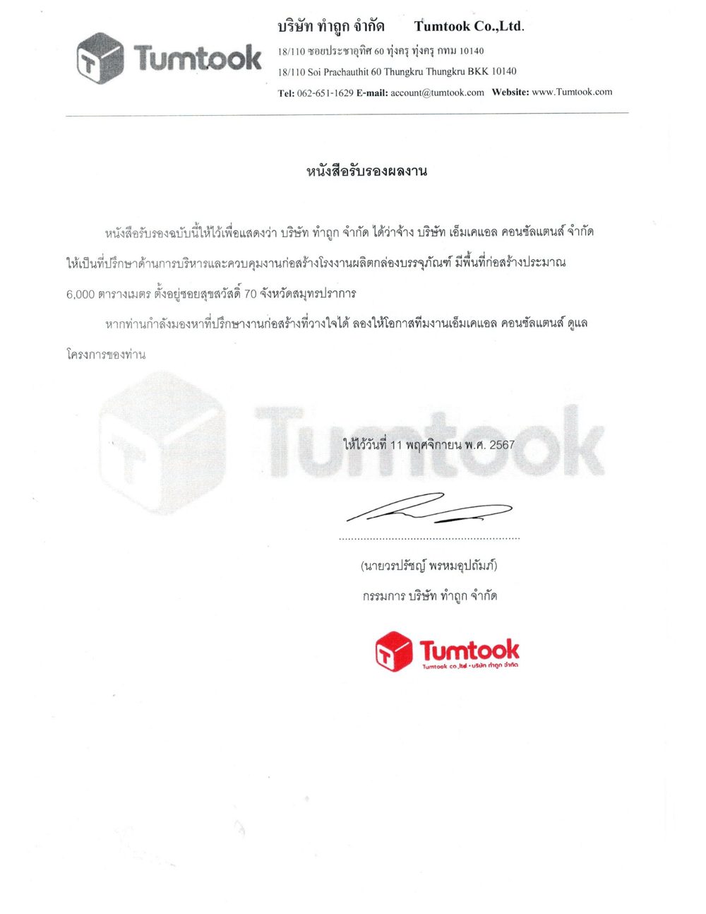 “หากท่านกำลังมองหาที่ปรึกษางานก่อสร้างที่วางใจได้ ลองให้โอกาสทีมงานเอ็มเคแอล ดูแลโครงการของท่าน”